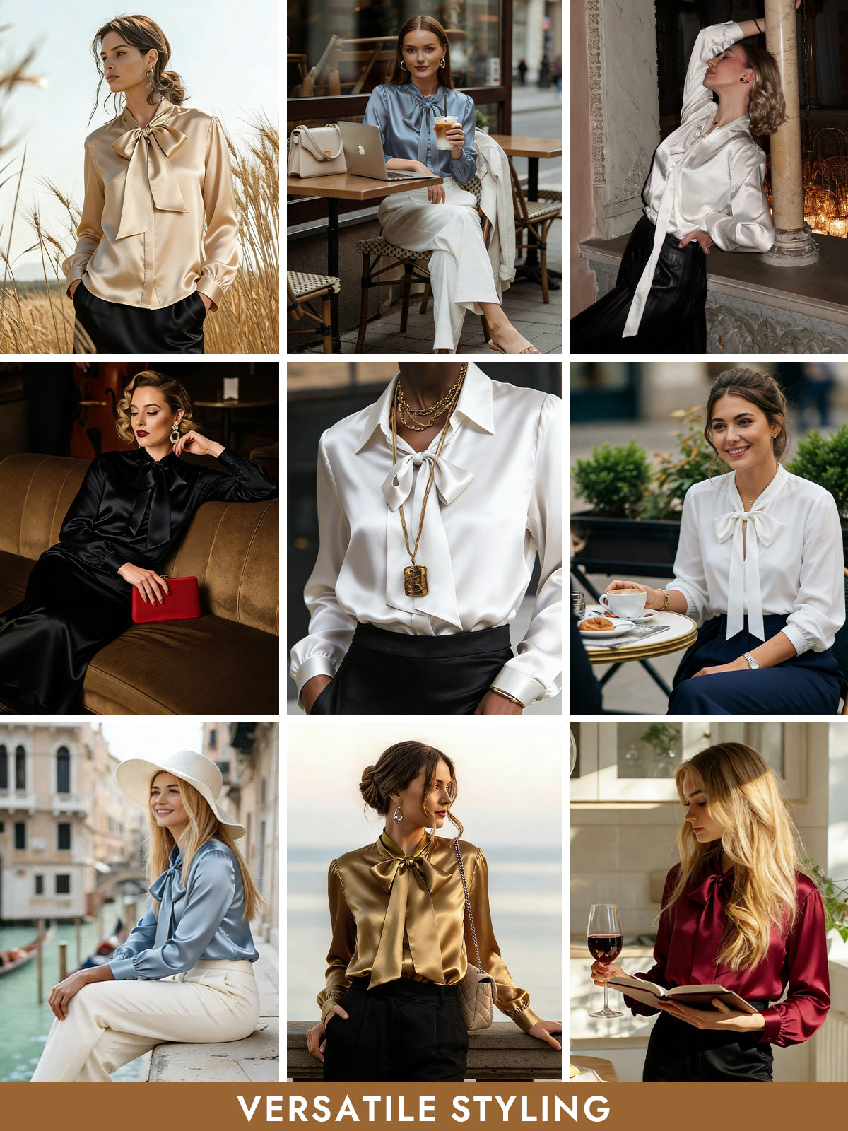 Adoro come veste questa camicia. È elegante e comoda, e la seta ha un tocco lussuoso.