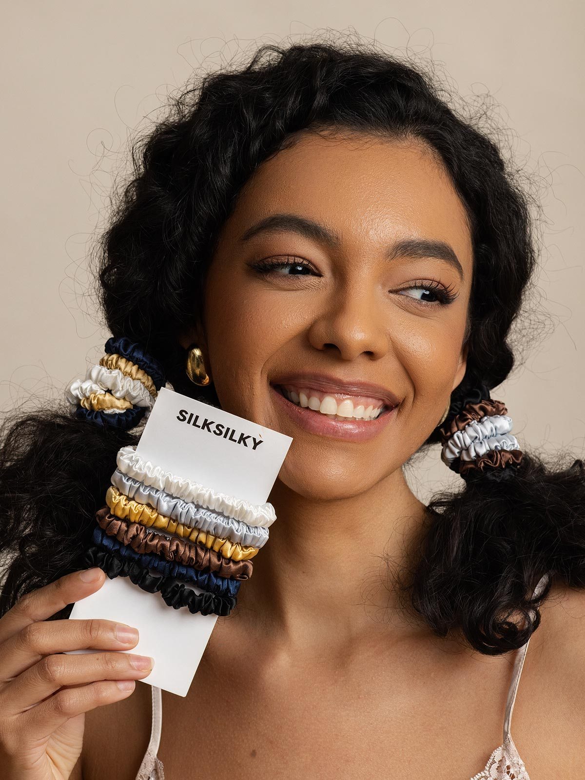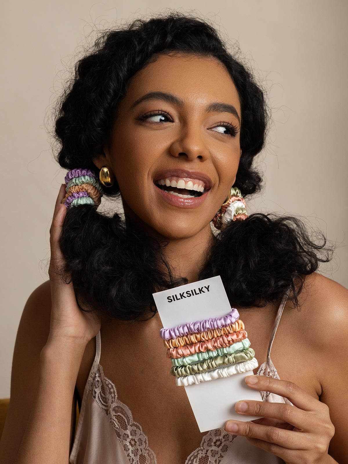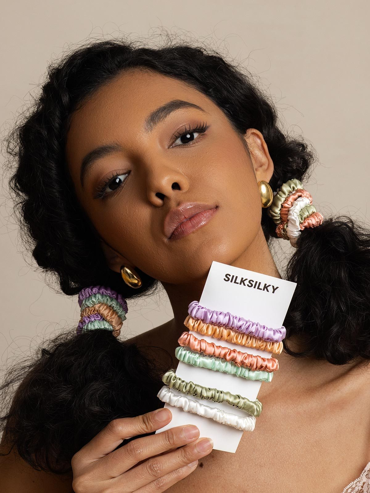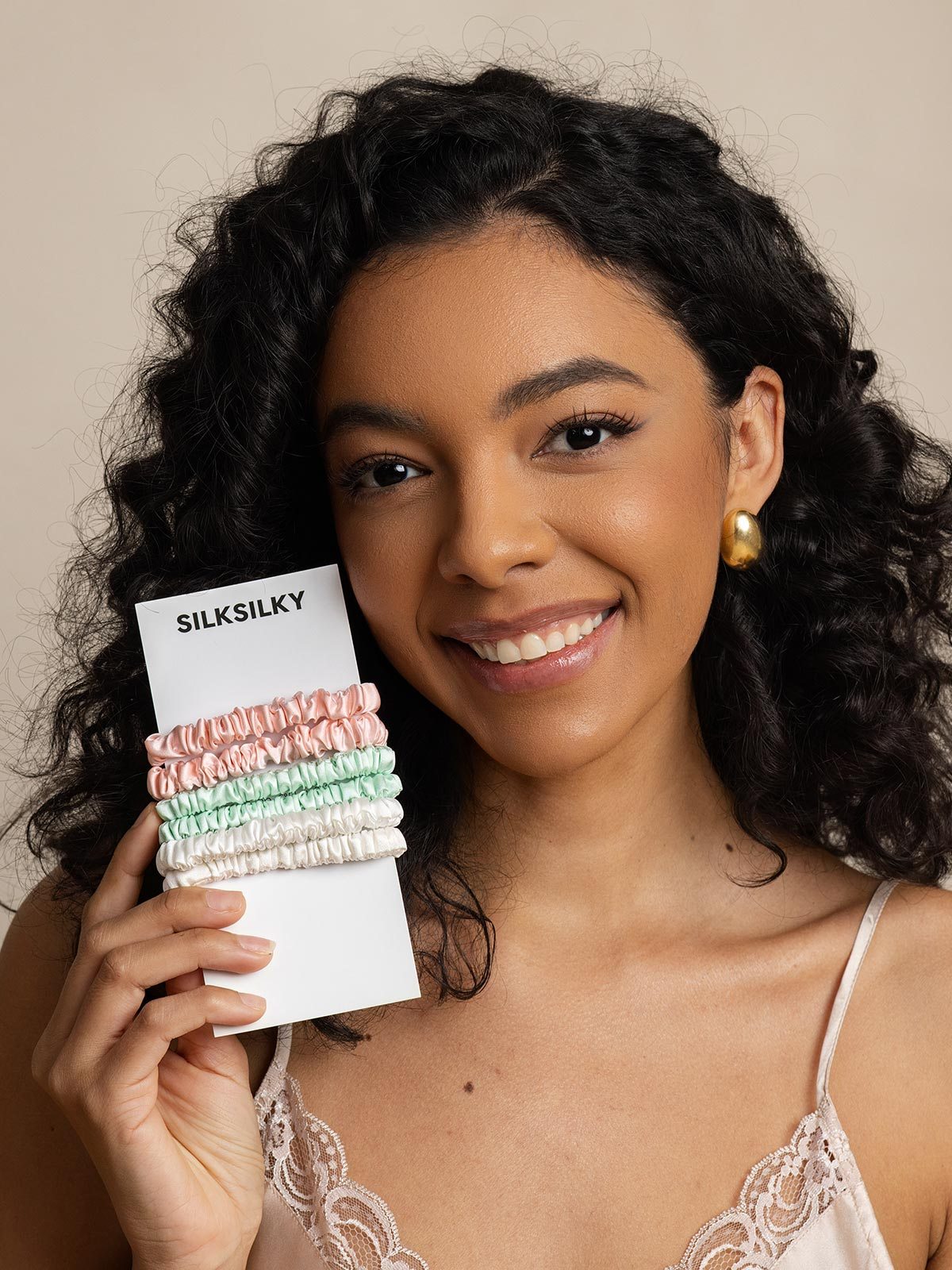 6Pcs Pure Silk Scrunchies-Regular - 1cm