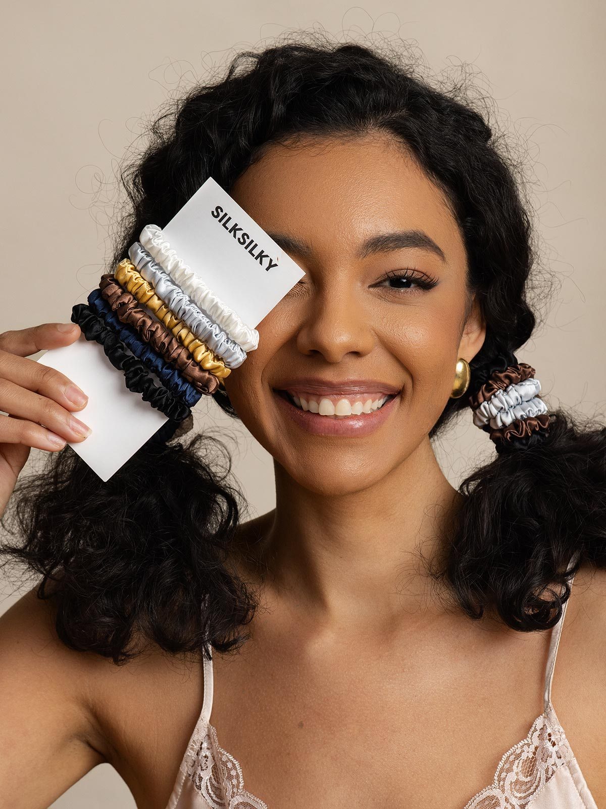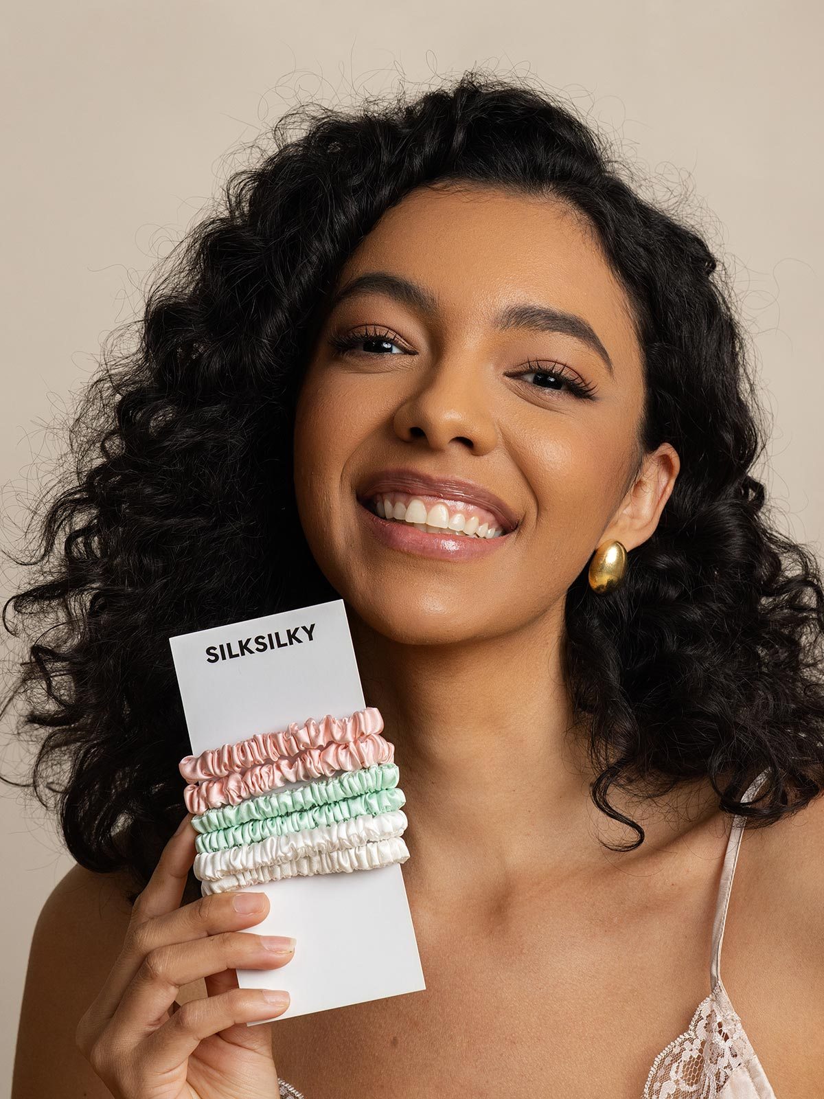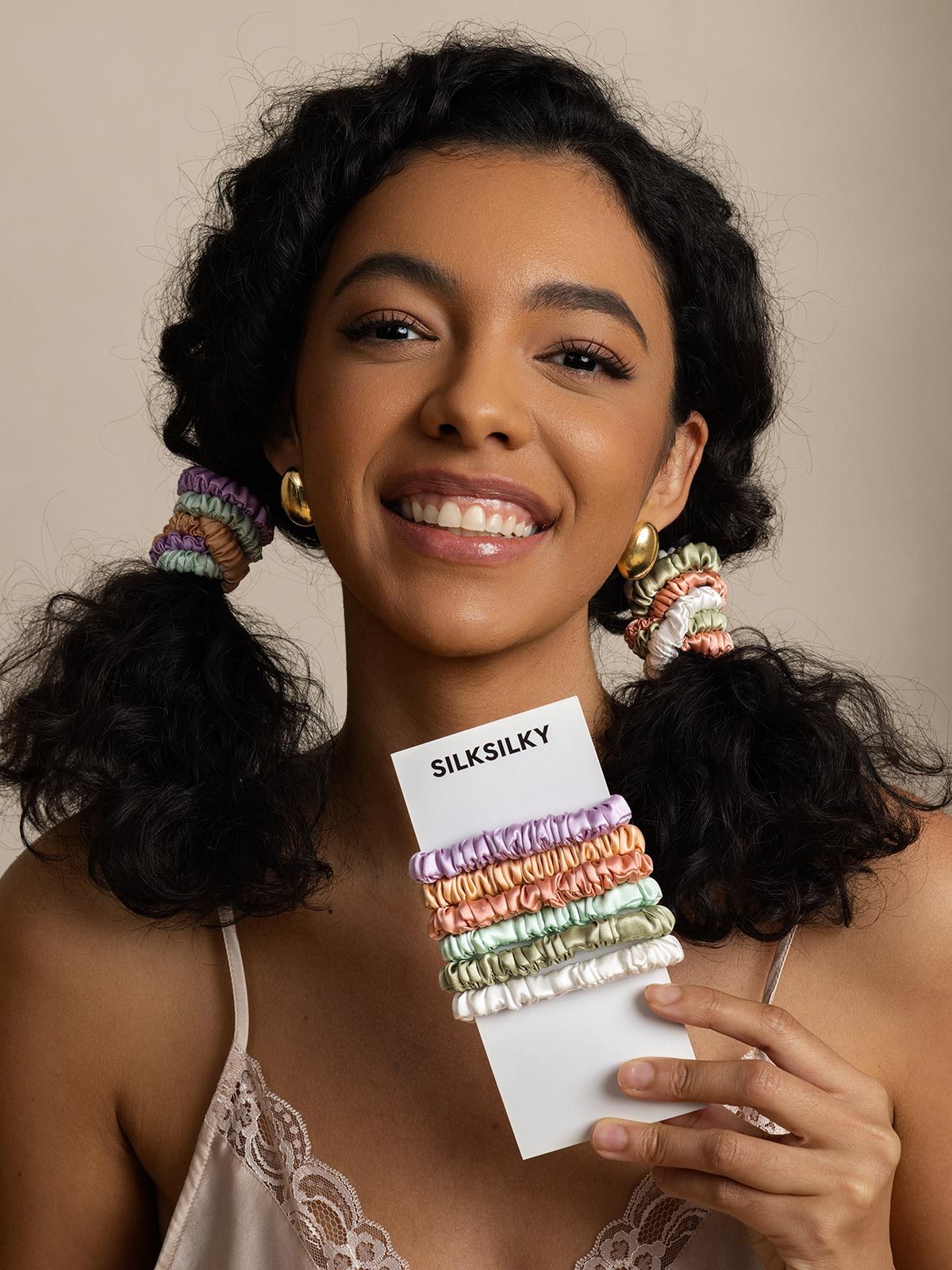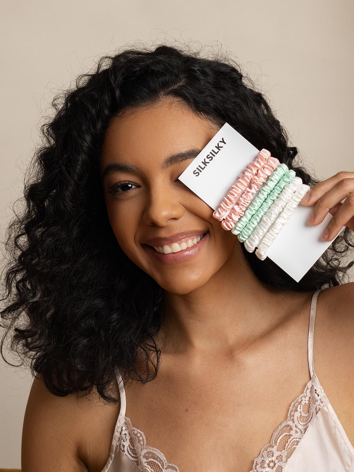 6Pcs Pure Silk Scrunchies-Regular - 1cm