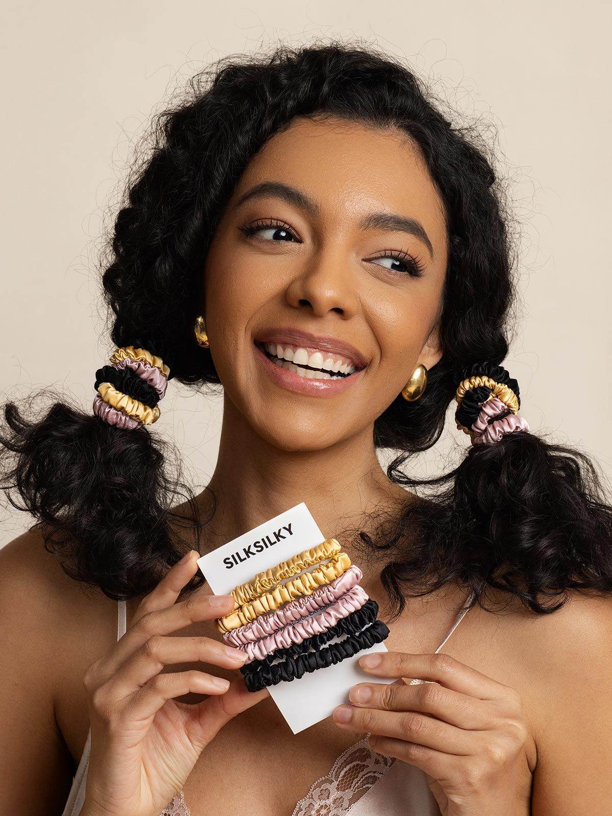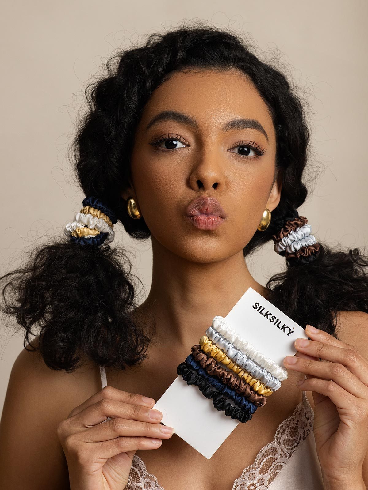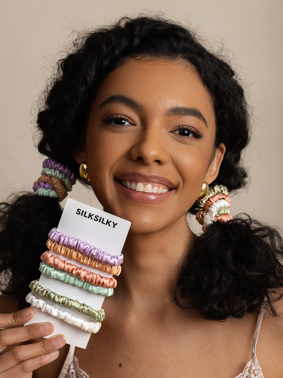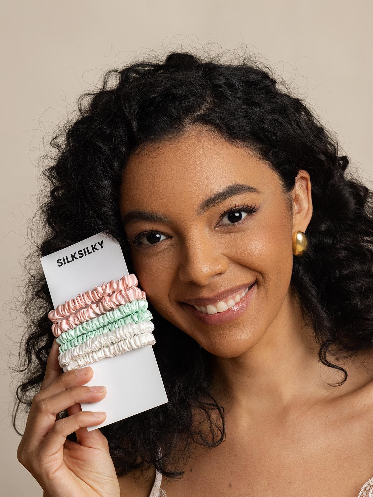 6Pcs Pure Silk Scrunchies-Regular - 1cm