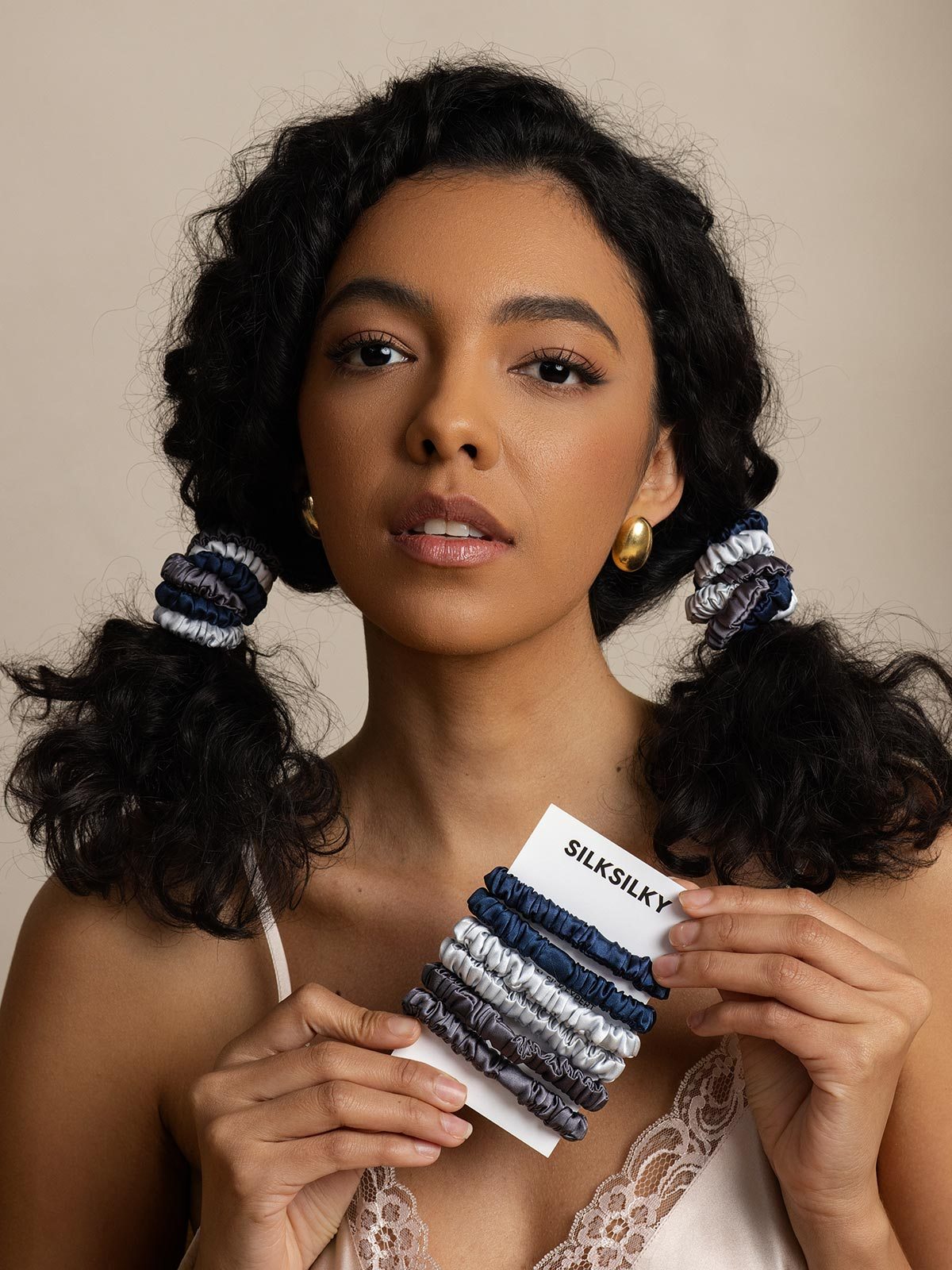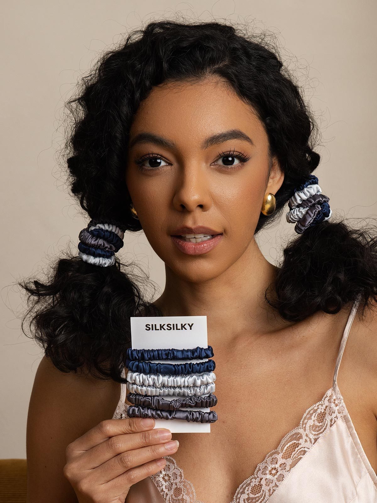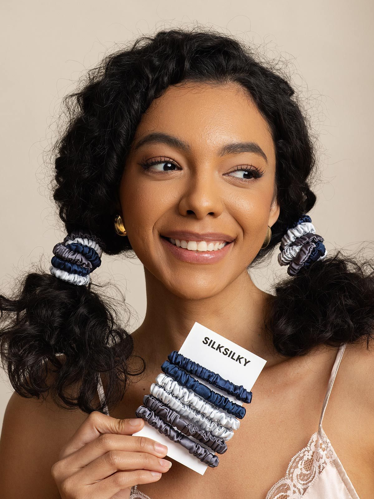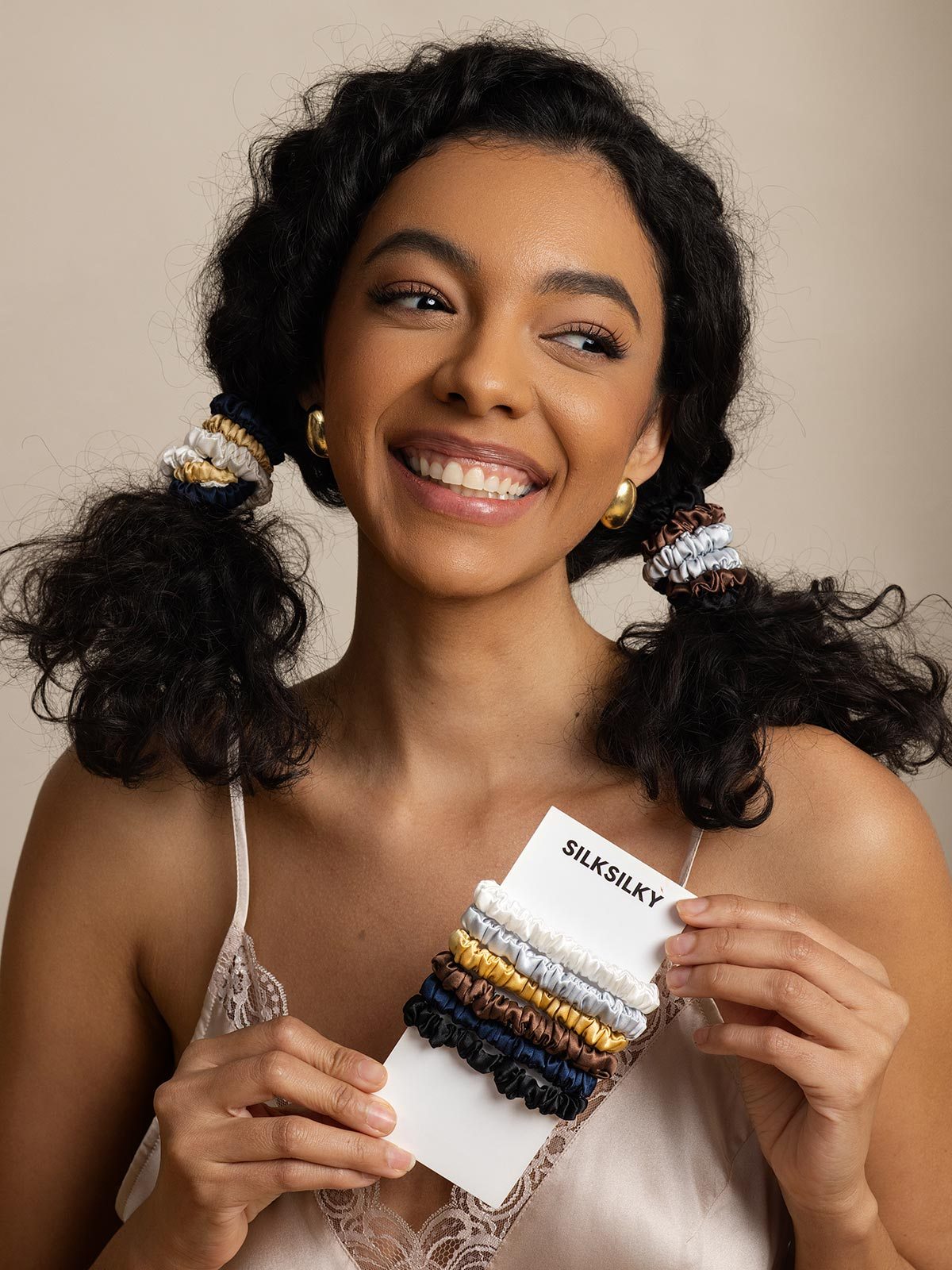 6Pcs Pure Silk Scrunchies-Regular - 1cm