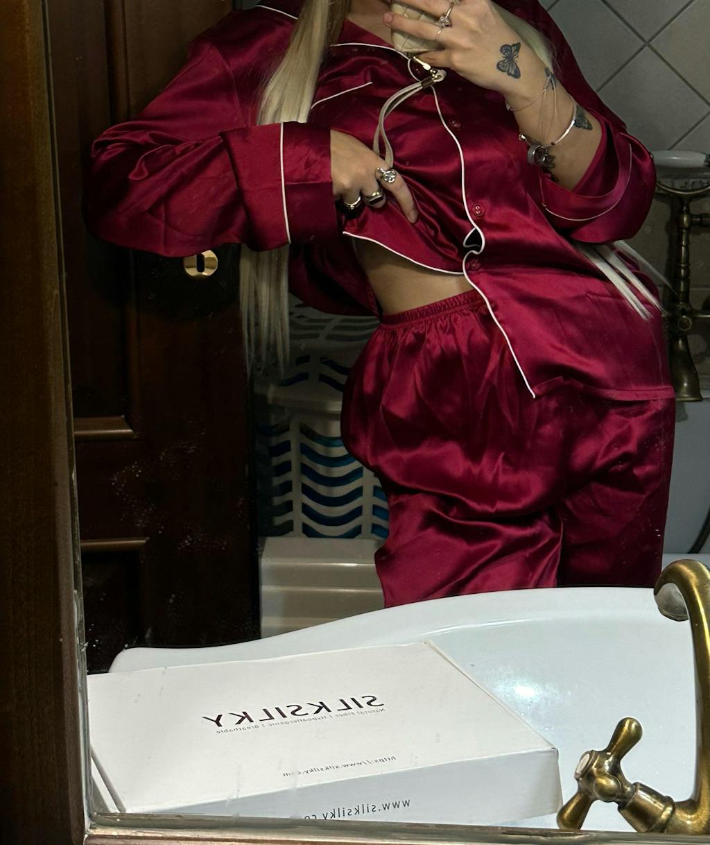 We wore these silk pajamas for a cozy evening together, and I’m in love with how they feel! The silk is so soft and smooth, it feels like a dream on the skin. The color is gorgeous and timeless, making it perfect for a special occasion. We spent the day just enjoying each other's company, and these pajamas added the perfect touch of luxury and comfort. Such a beautiful memory, and I’m so glad we decided to treat ourselves to this!