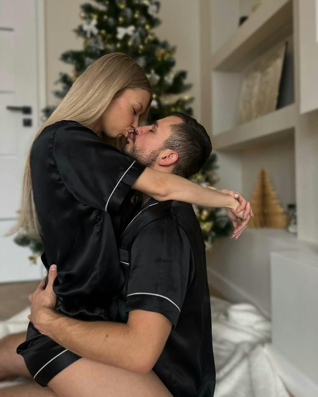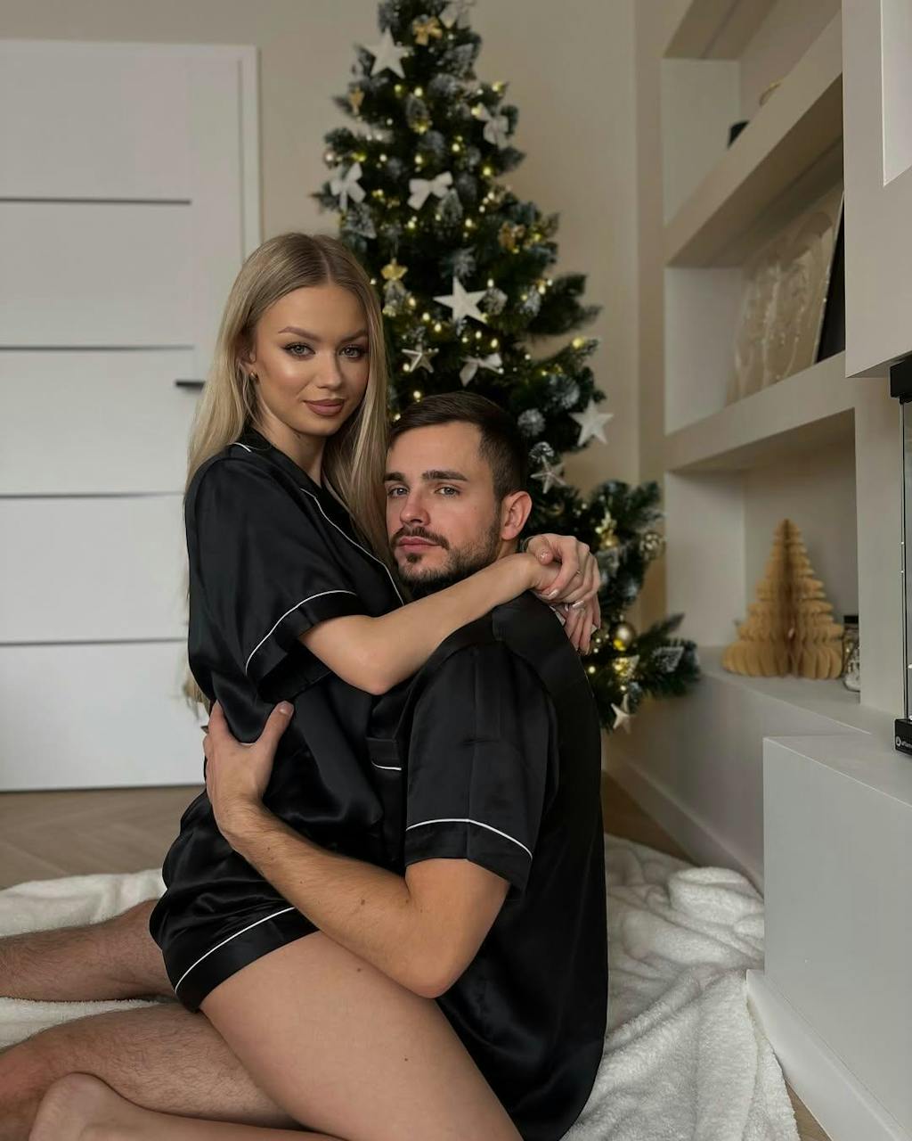 The silk material of this couple's pajama set is absolutely luxurious. It’s soft, smooth, and feels amazing on the skin for both of us.