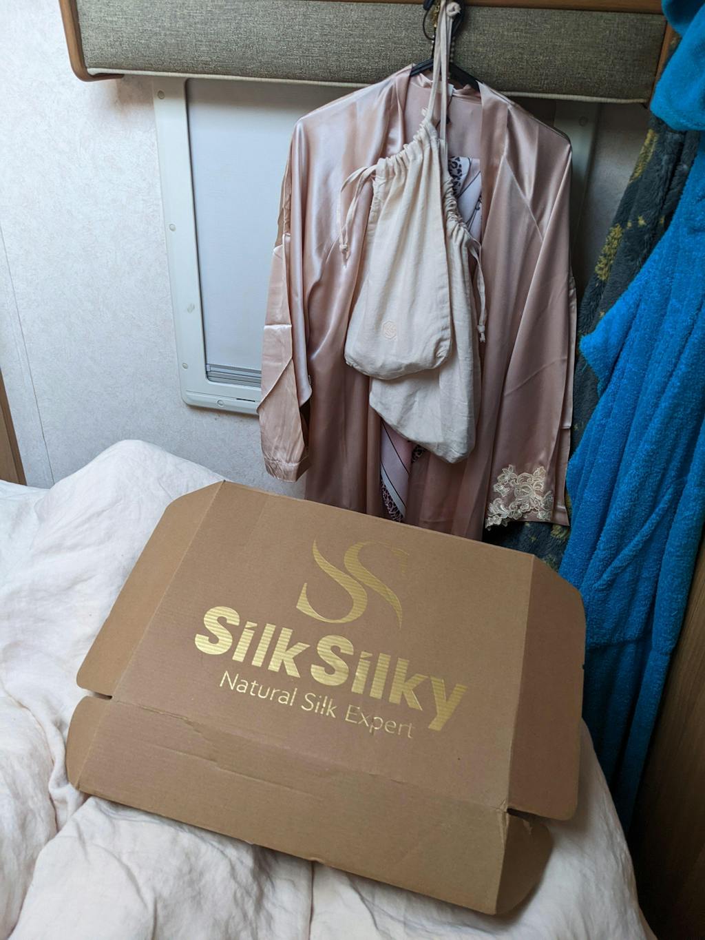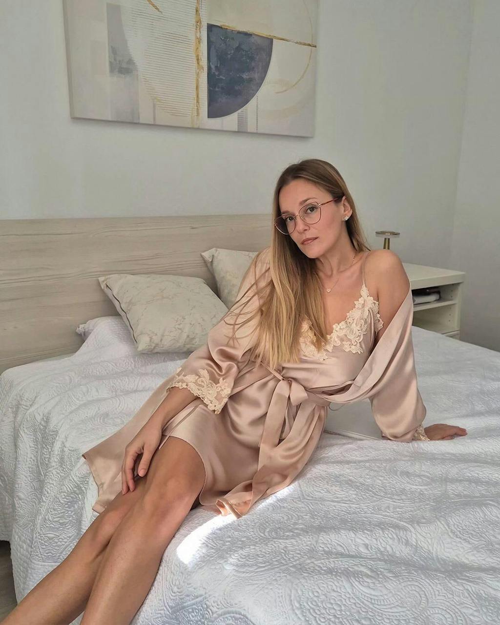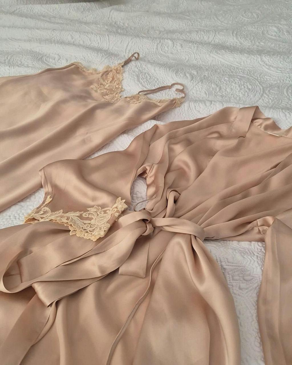 I’m genuinely impressed with this nightgown and robe set. The silk feels incredibly soft and smooth against the skin, making it a joy to wear every evening. It drapes beautifully and feels light and breathable, helping me relax the moment I put it on. The whole set feels elegant yet effortless, and it truly elevates my nighttime routine.