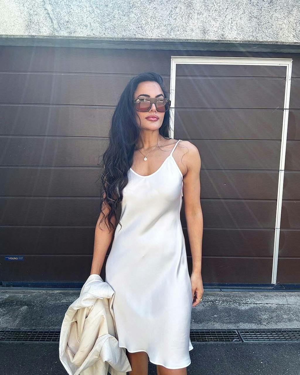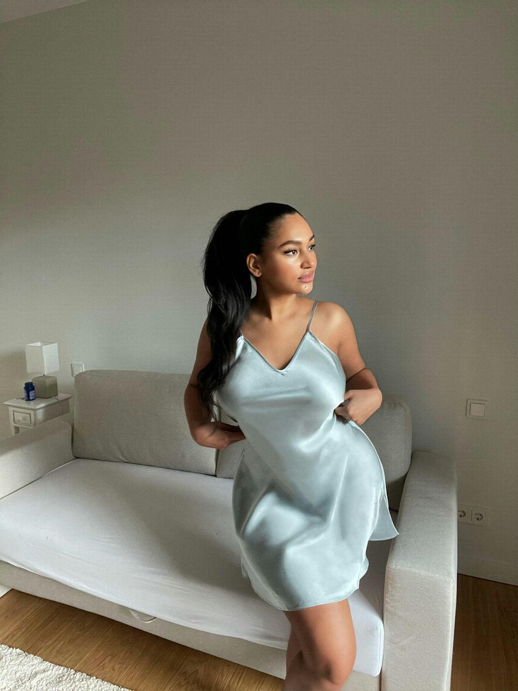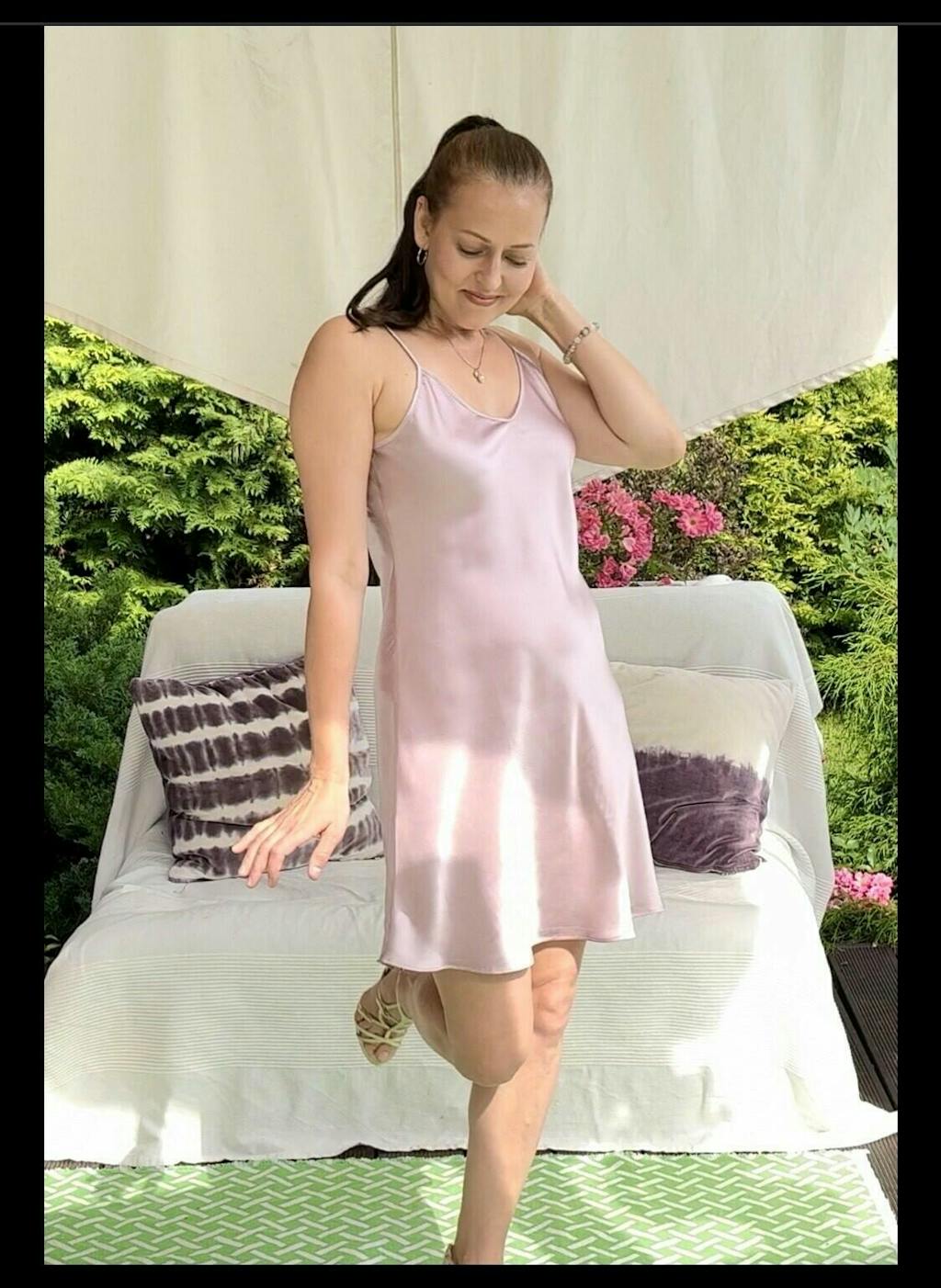 I love this nightgown! It’s soft and has just the right amount of stretch, making it incredibly comfortable for sleeping. The silk feels breathable and cooling, especially on warmer nights. Plus, it’s elegant enough to wear while lounging around the house. It has a relaxed fit but still manages to feel chic. So happy I treated myself to this!