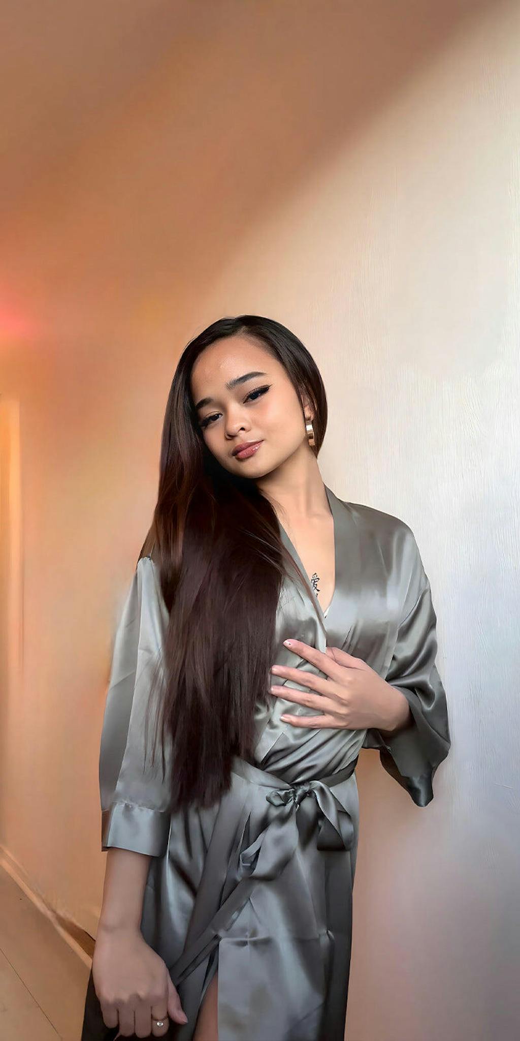 Denne silkekåpen er veldig behagelig å ha på seg. Stoffet føles mykt og glatt mot huden, og kvaliteten virker høy. Den ser elegant ut og gir en følelse av luksus i hverdagen. Passformen er god, og kåpen er komfortabel både om morgenen og kvelden. Jeg er veldig fornøyd og kan absolutt anbefale den videre.