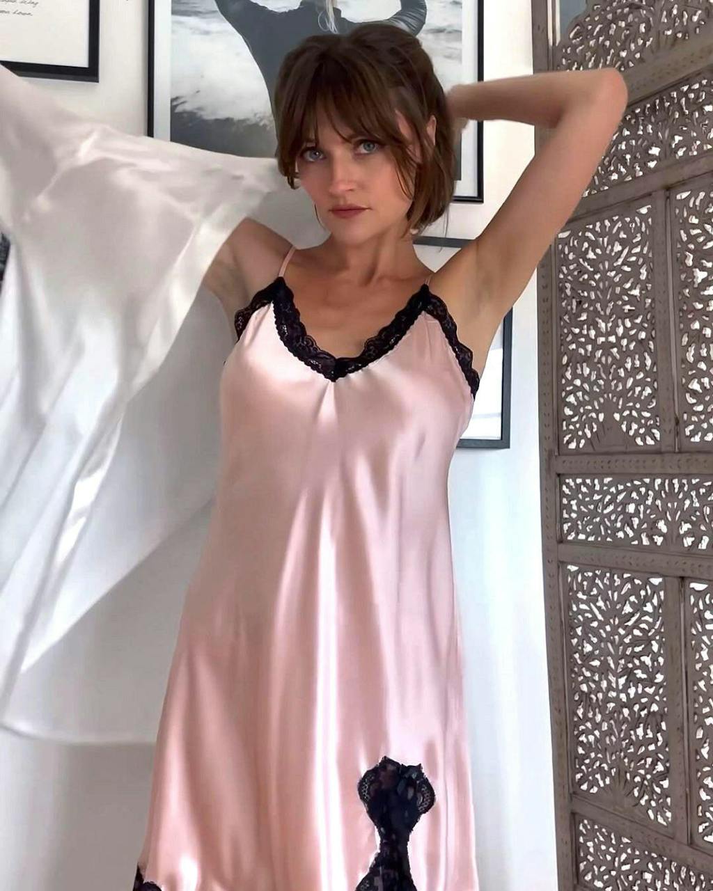 I bought it to match my pink nightgown, and the combination of the two is beyond my expectation, it looks better than I thought! If I only wear a underwear set under the nightgown in summer, I won’t feel uncomfortable!