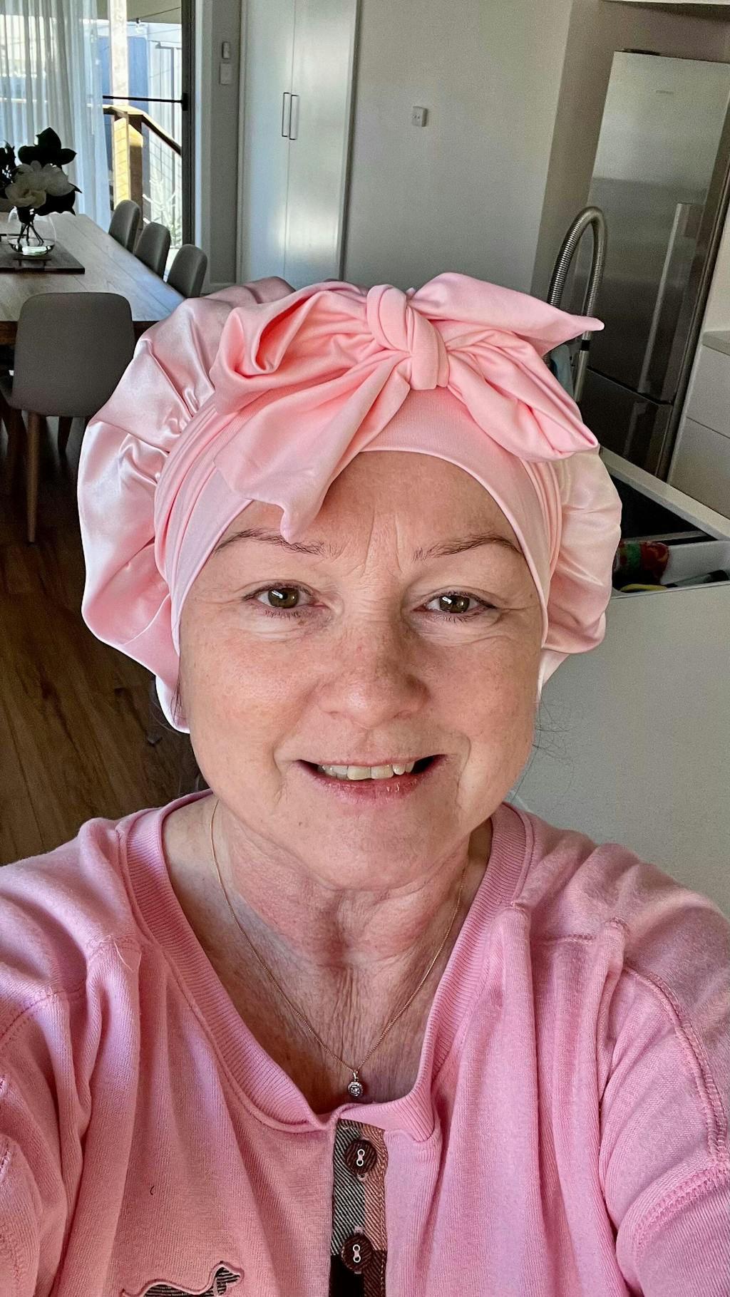 The silk bonnet is exactly as it looks in the photo and is very well made. It is very soft and the light pink colour is lovely. I also found that it stayed on my head and didn’t come off even though I turn from side to side while sleeping. But, as much as I love it, after a week I realised I had developed a rash all around the base of my hairline, the rash disappeared when I stopped using the bonnet. That’s just unfortunate for me. I still highly recommend the bonnet.
