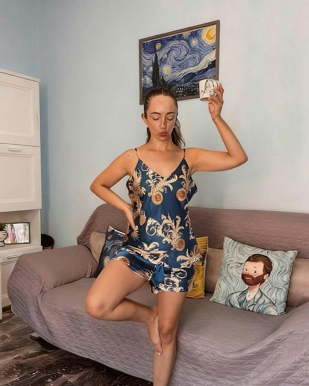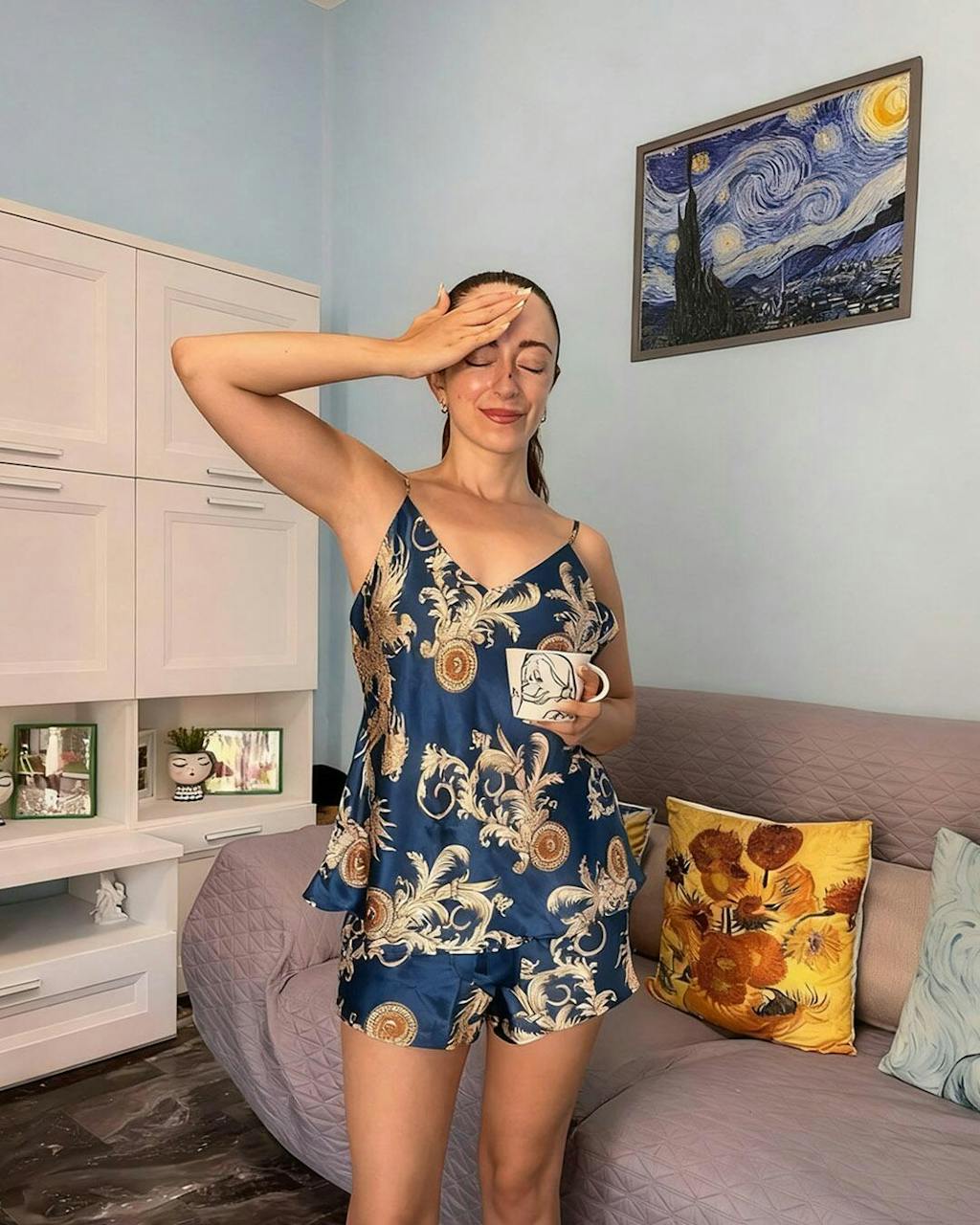 I’m really about to buy 3 more of these. They are sooooo comfortable and cute. I get hot easily at night so these are very breathable and not tight at all.