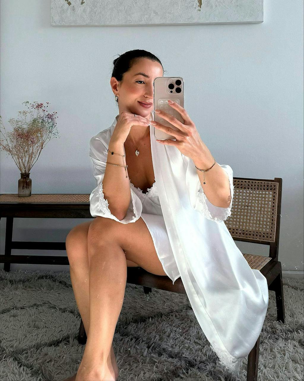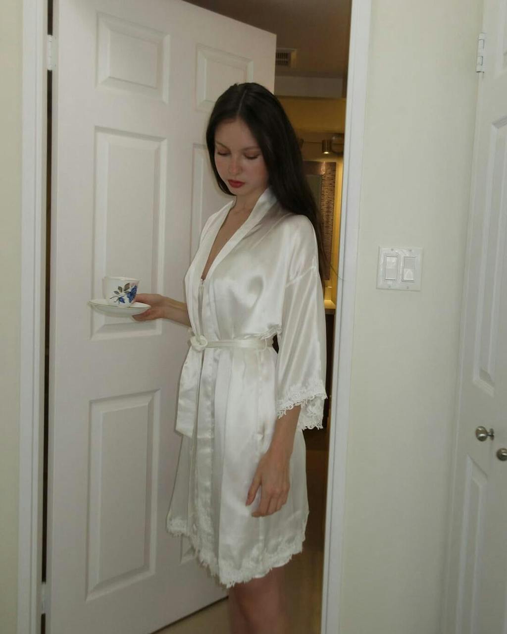 Ich habe dieses Set als Belohnung für mich selbst gekauft und bin so froh, dass ich es getan habe! Die Qualität ist erstaunlich und die Seide fühlt sich wie der Himmel auf meiner Haut an. Das Nachthemd sitzt wie angegossen und die Robe ist der perfekte Abschluss. Dies ist mein neues Lieblings-Lounging-Outfit — ich kann es kaum erwarten, mehr zu bekommen!