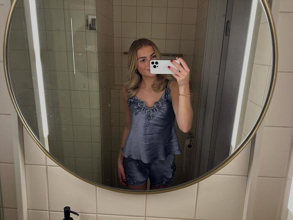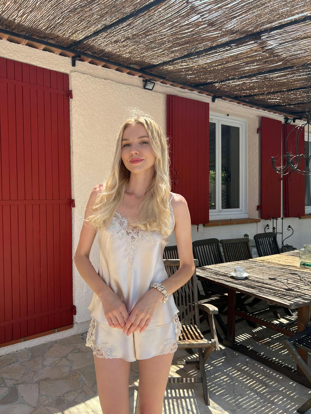 I have this pajamas set in color beige, size XS and I am so in love with it! Sleeping in silk is a game changer! :)
