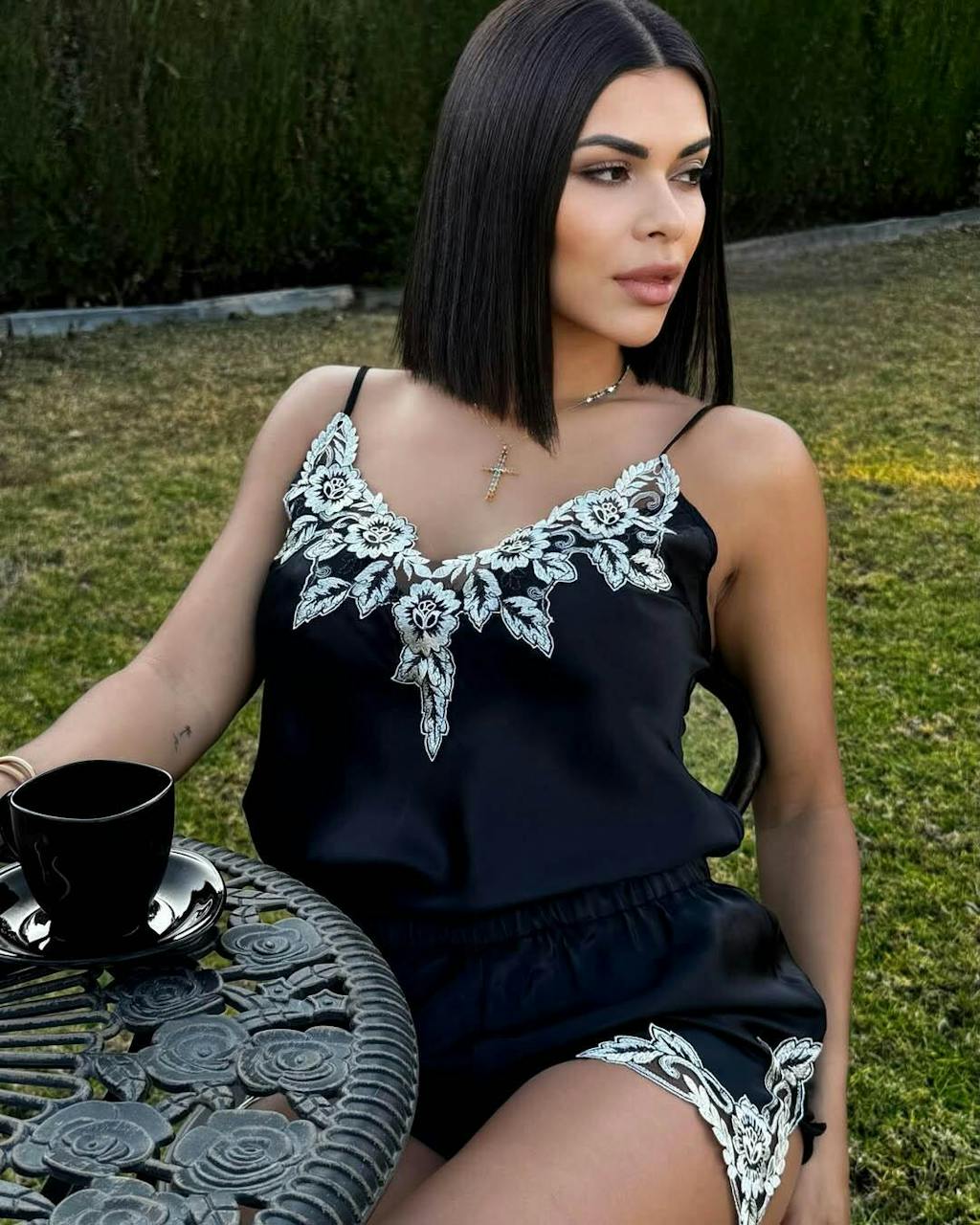 This is the most comfortable pajama set I own. Perfect for a relaxing evening at home. The silk is incredibly soft, and the lace trim makes them look so stylish. Highly recommend!