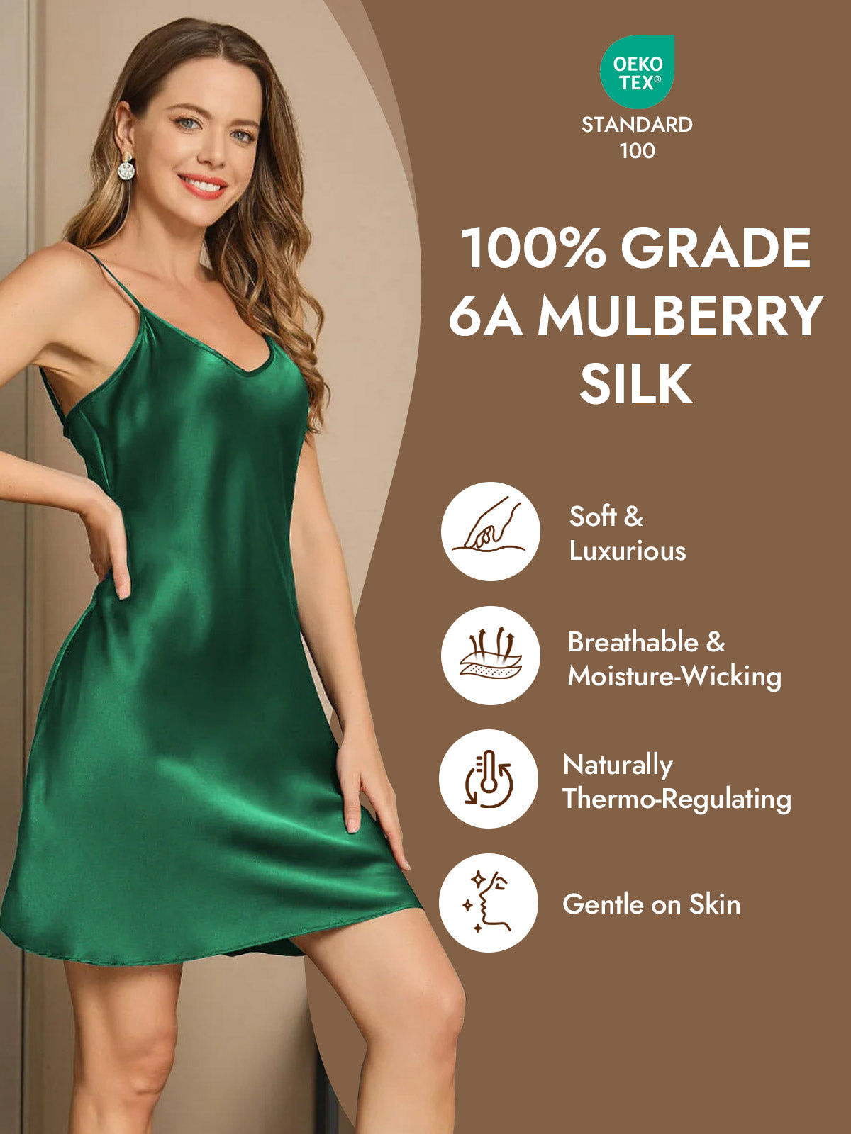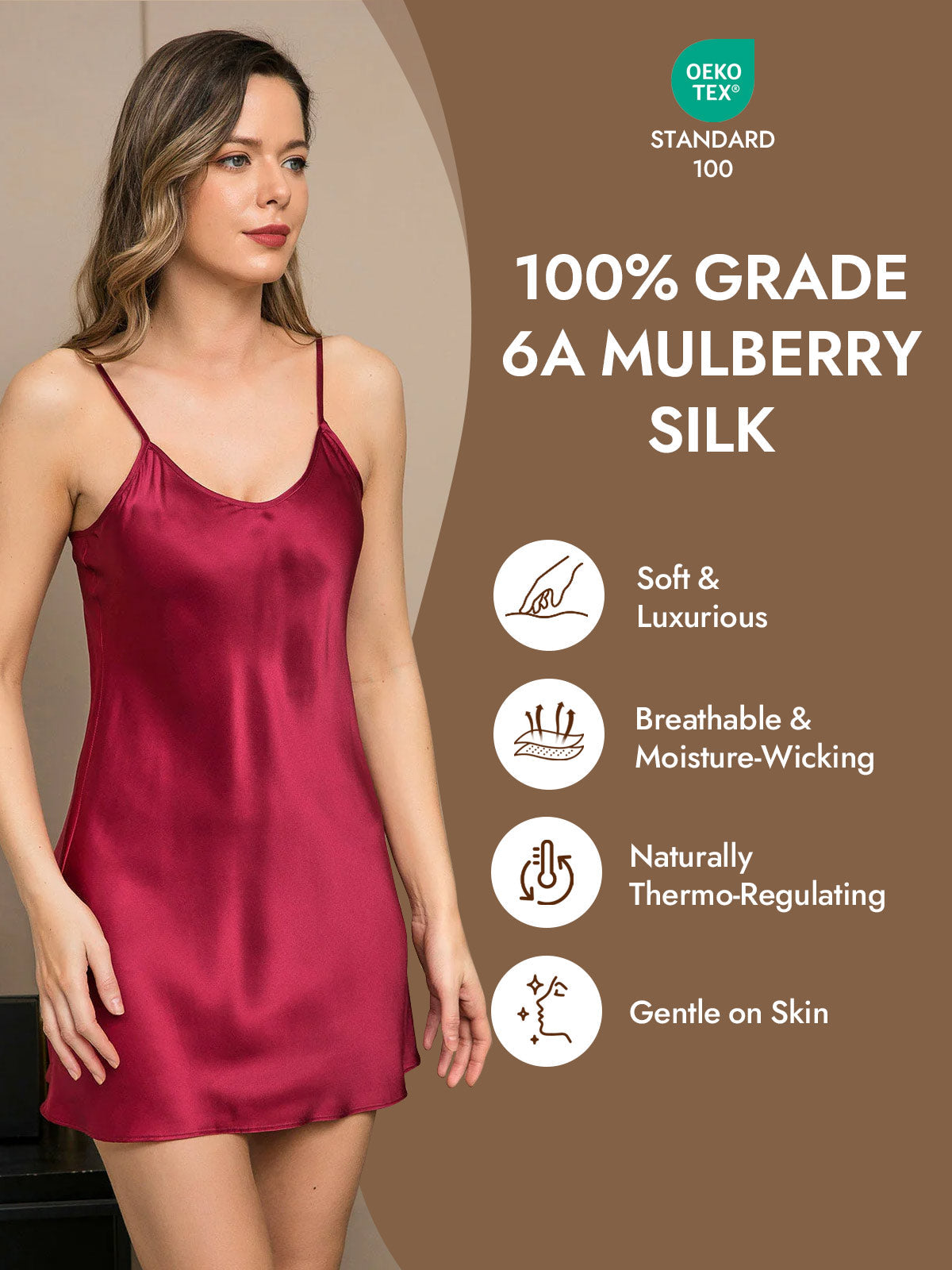 I love this nightgown! It’s soft and has just the right amount of stretch, making it incredibly comfortable for sleeping. The silk feels breathable and cooling, especially on warmer nights. Plus, it’s elegant enough to wear while lounging around the house. It has a relaxed fit but still manages to feel chic. So happy I treated myself to this!