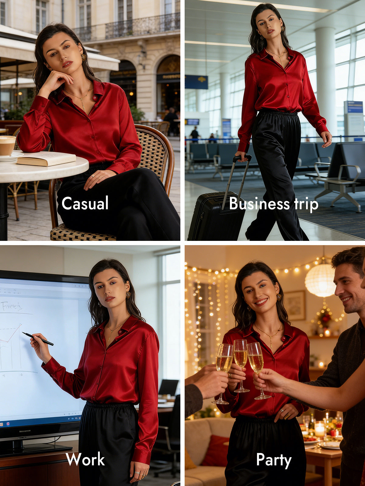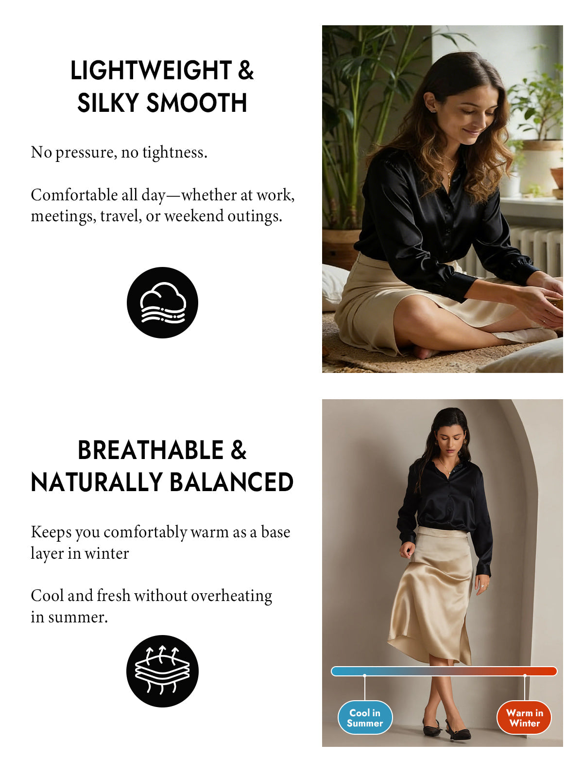 19Momme Silk Long Sleeve Lapel Collar Women's Shirt with Button Up Design