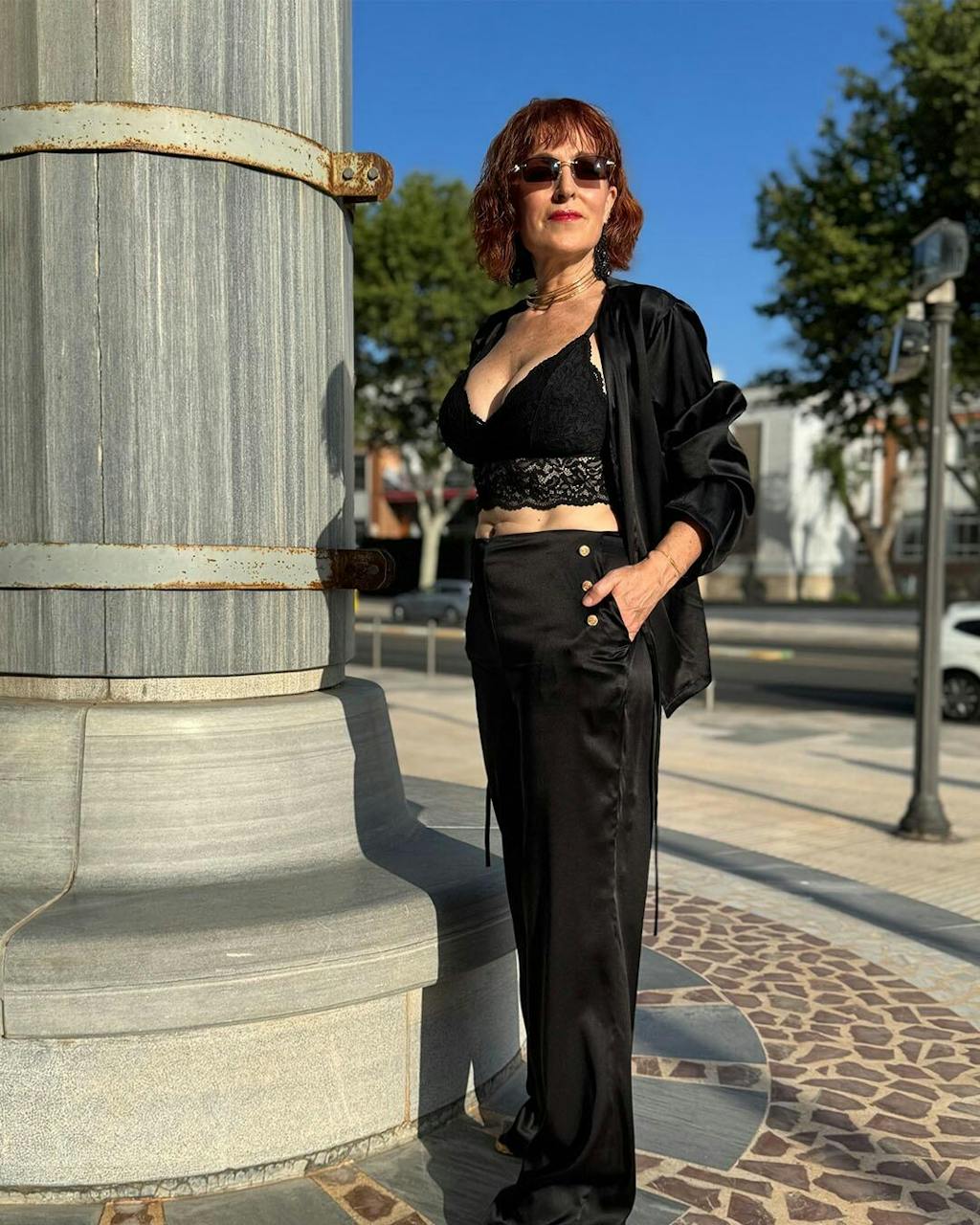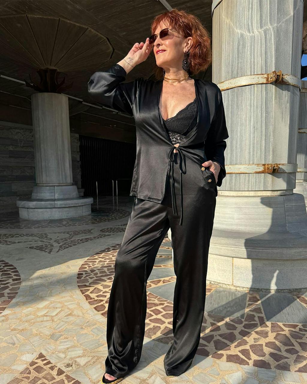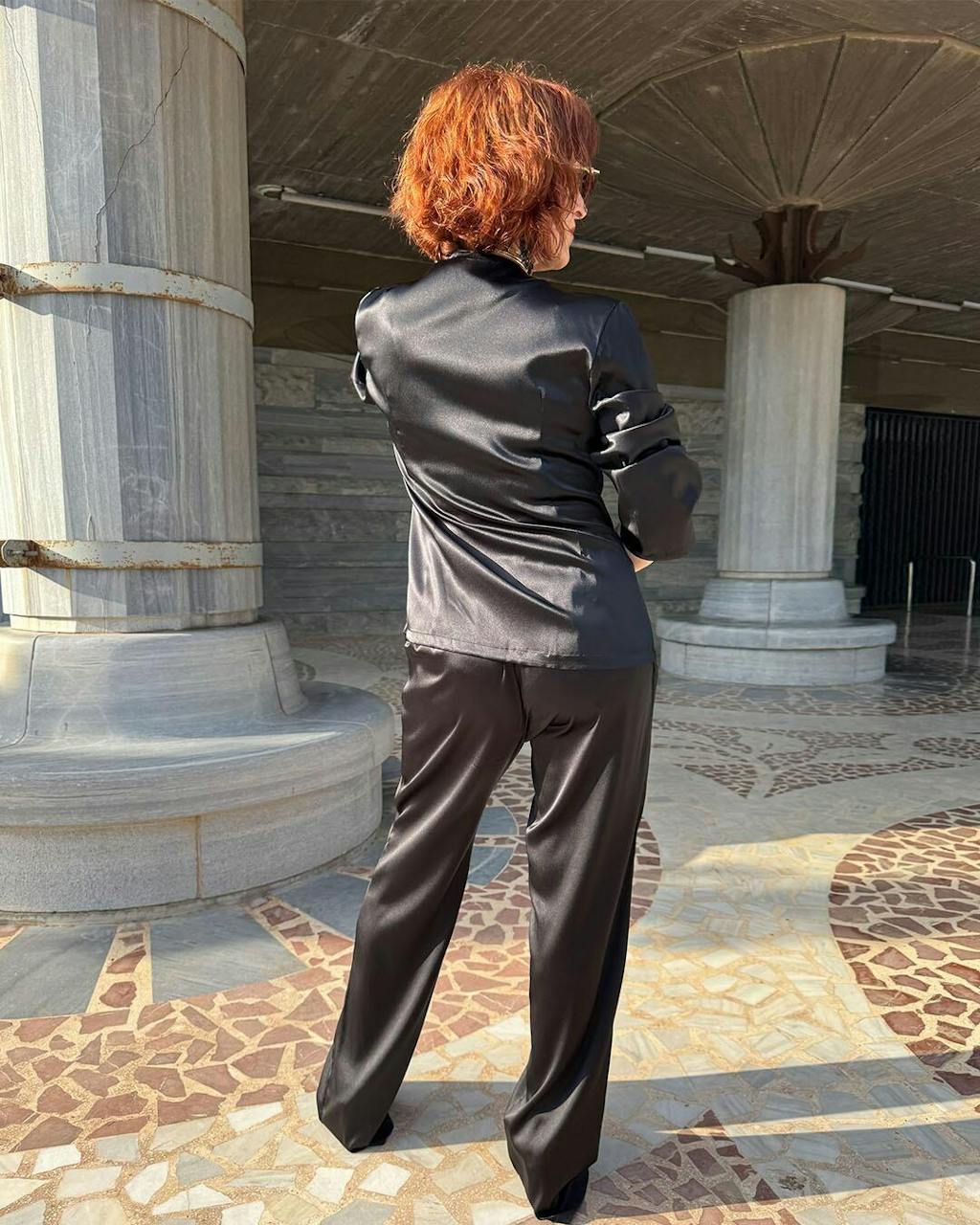 Oh, estos pantalones negros me hacen sentir muy segura. Se ven elegantes al aire libre, fluidos pero estructurados, y transmiten un aire muy pulido.